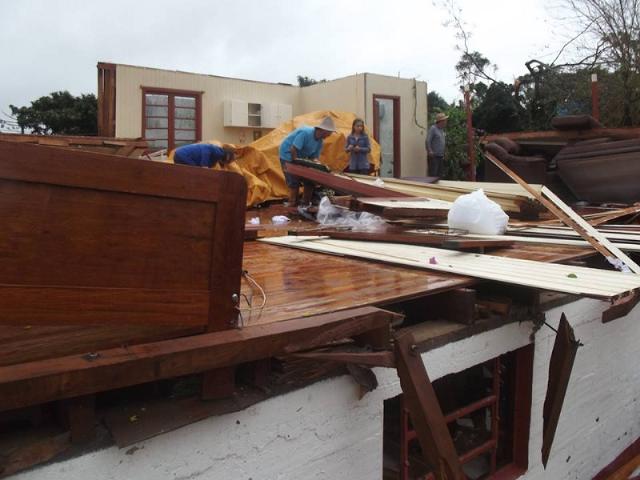 O vendaval da madrugada de sábado, 12, destelhou pelo menos 200 residências na área urbana de Erebango. Um homem e sua mãe ficaram feridos e foram encaminhados ao Hospital São Roque, do município de Getúlio Vargas. Outro homem que também recebeu atendimento no hospital de Getúlio Vargas precisou ser transferido para Erechim, com suspeita de perfuração de pulmão. Os ventos passaram dos 100 quilômetros por hora. O prefeito Enio Menegalli acredita que um ciclone possa ter atingido o município de três mil habitantes e não está descartada a possibilidade do decreto de estado de emergência. Metade da cidade estava sem energia elétrica até às 11h15.
