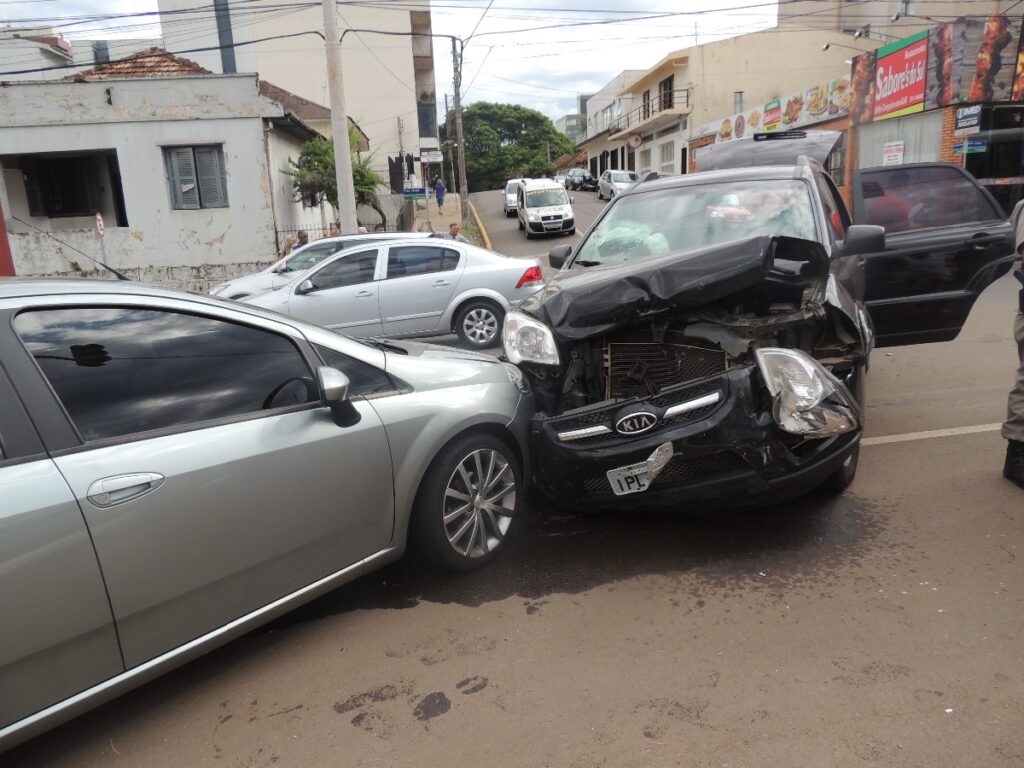 Uma caminhonete Kia e um automóvel Punto envolveram-se em um acidente na confluência da rua Francisco Alves com a Avenida Presidente Vargas, em Passo Fundo-RS, na manha desse sábado. A caminhonete teve o radiador estourado e o automóvel ficou com a lateral esquerda toda danificada com o choque. Ninguém ficou ferido.