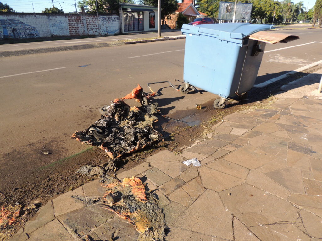 Mais um contêiner de lixo incendiado em Passo Fundo. E novamente ao amanhecer, após as festas da madrugada.