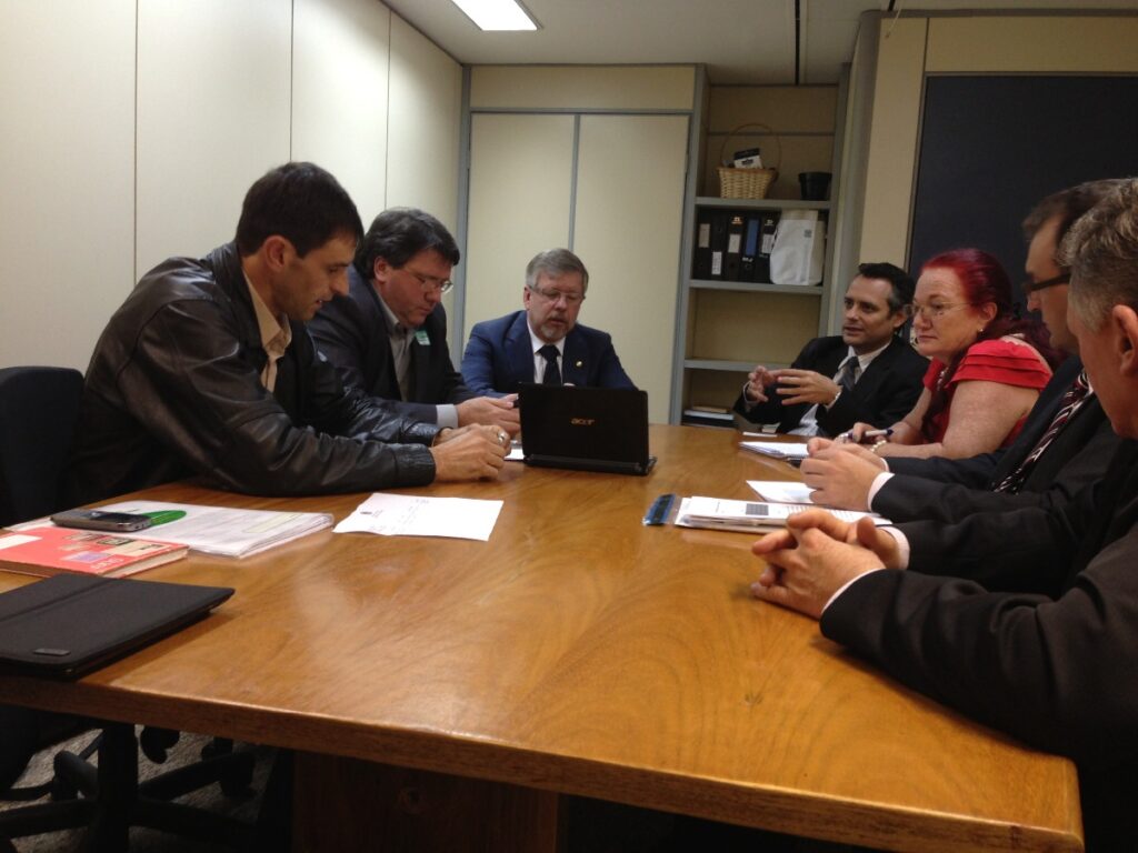 Uma reunião em Brasília, nesta quarta-feira (17), no Ministério da Justiça, tratou dos conflitos agrários no Rio Grande do Sul, em especial a situação de tensão vivida no município de Sananduva. Estiveram presentes no encontro com o assessor especial do Ministro da Justiça José Eduardo Cardozo, Marcelo Veiga, o deputado estadual Altemir Tortelli, o deputado federal Marco Maia, o representante da Fetraf-Sul, Sidimar Lavandoski, e o prefeito de Sananduva, Antônio Roberto Caldato. Viegas garantiu que todos os processos de demarcação de terras e levantamentos estão suspensos.