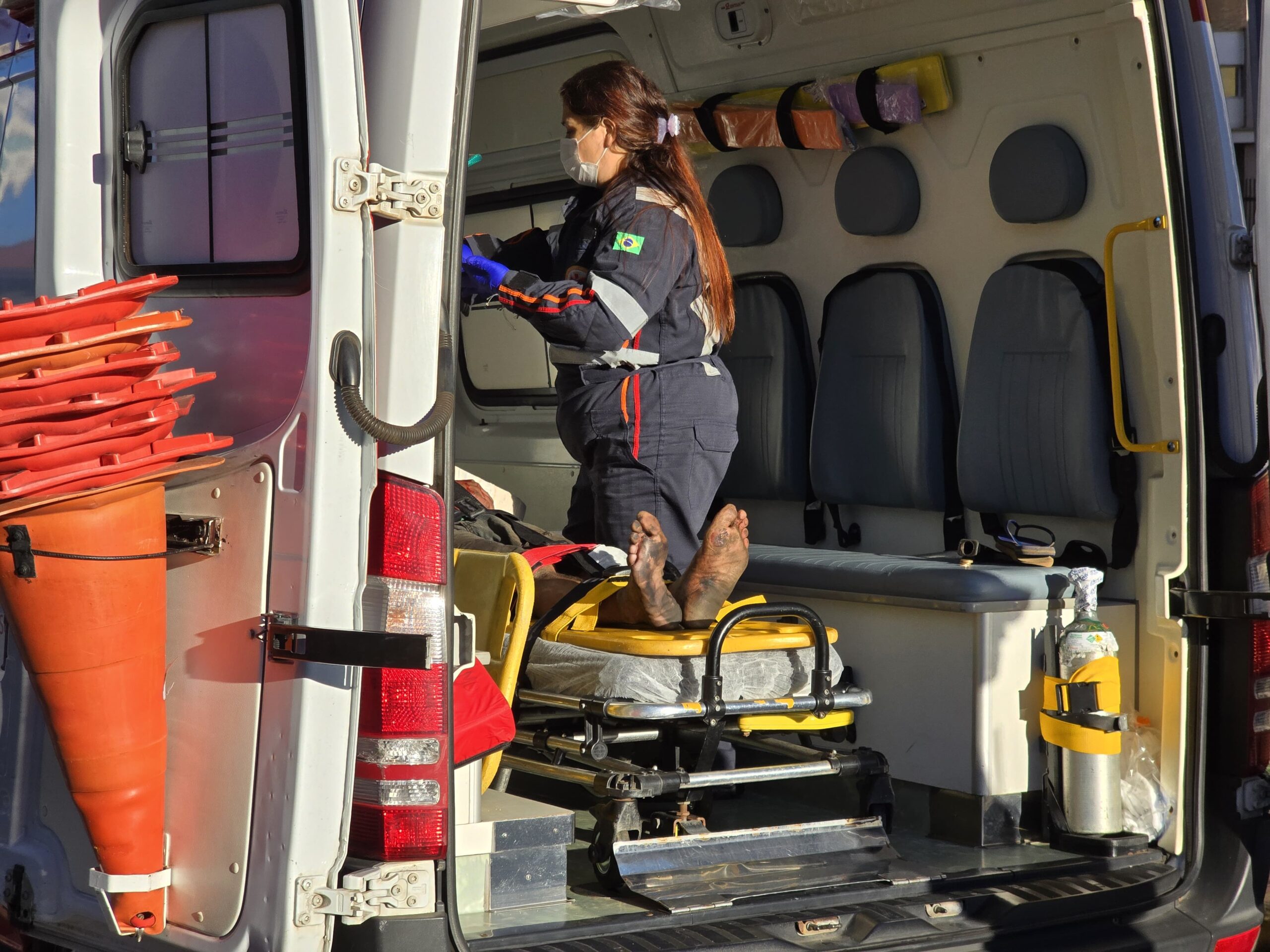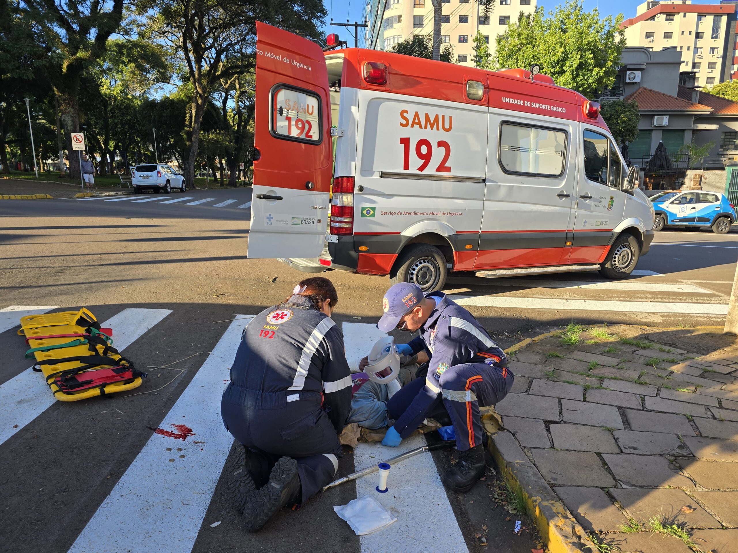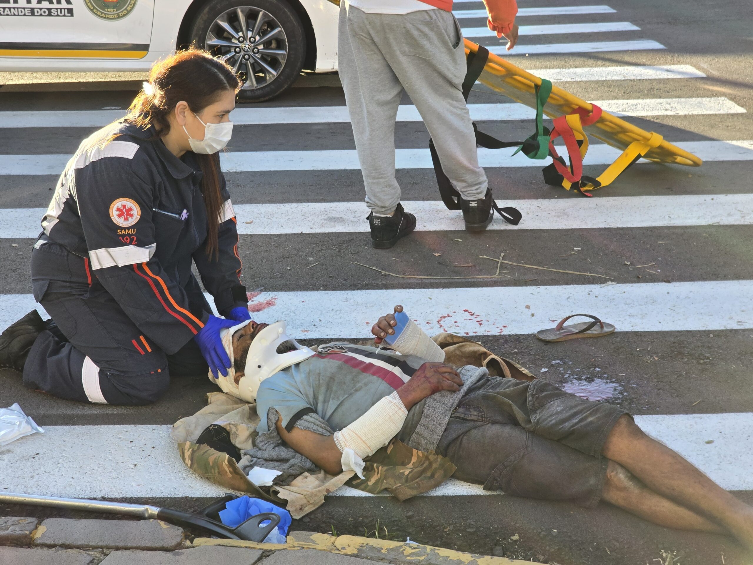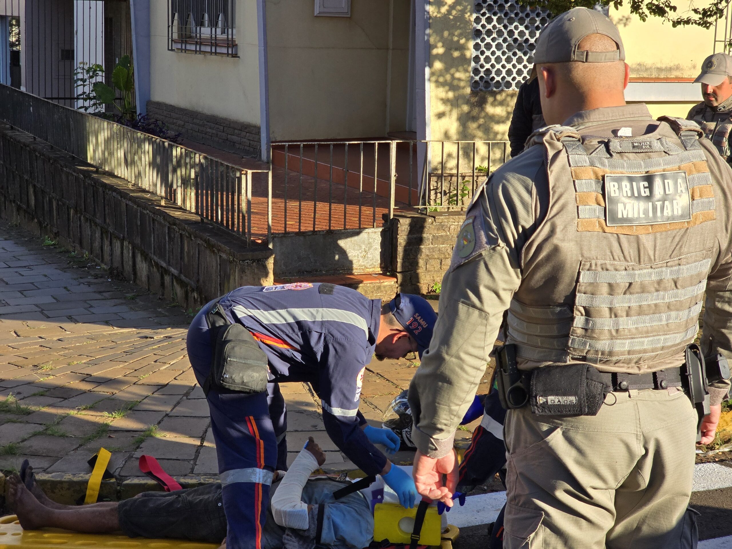 O Serviço de Atendimento Móvel de Urgência (SAMU) prestou atendimento no local e encaminhou a vítima ao Hospital São Vicente de Paulo. Apesar das lesões, o homem estava consciente.