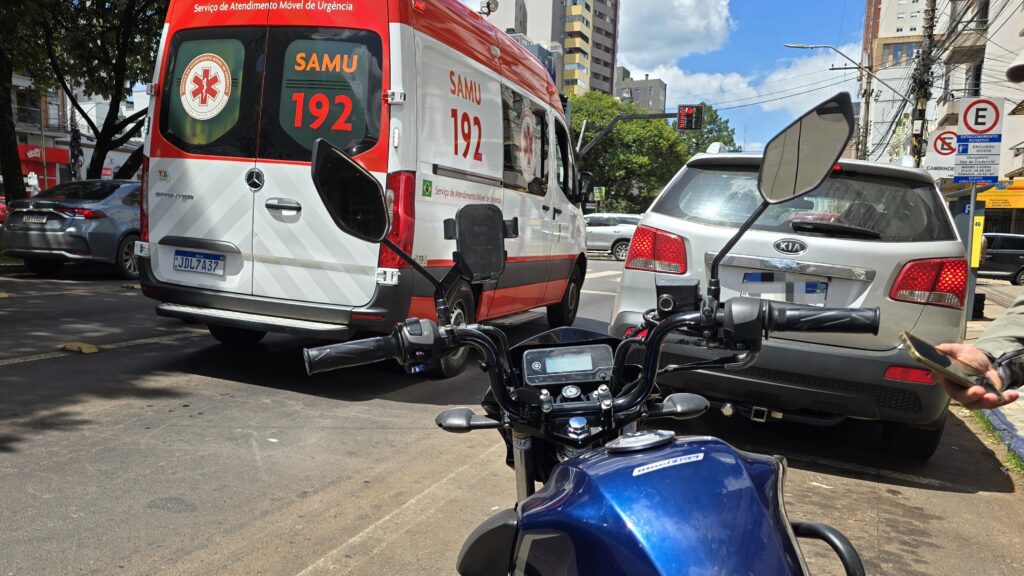 Na tarde desta sexta-feira (23), um motoboy ficou ferido após um acidente de trânsito registrado na Avenida Brasil, no Centro de Passo Fundo, nas proximidades do Bela Citta Shopping. A colisão ocorreu entre um Renault Sandero e uma Yamaha YBR Factor no cruzamento com a rua Teixeira Soares.