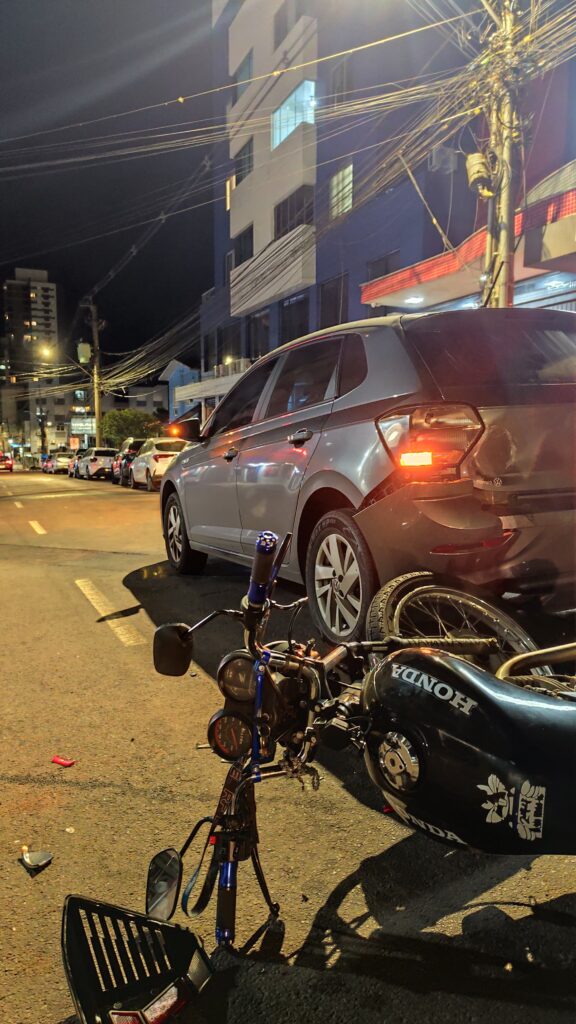 Segundo informações obtidas pela reportagem policial do Grupo Planalto de Comunicação, o condutor do Polo manobrava para estacionar quando a motocicleta atingiu a traseira do veículo. As circunstâncias exatas da batida ainda serão apuradas.