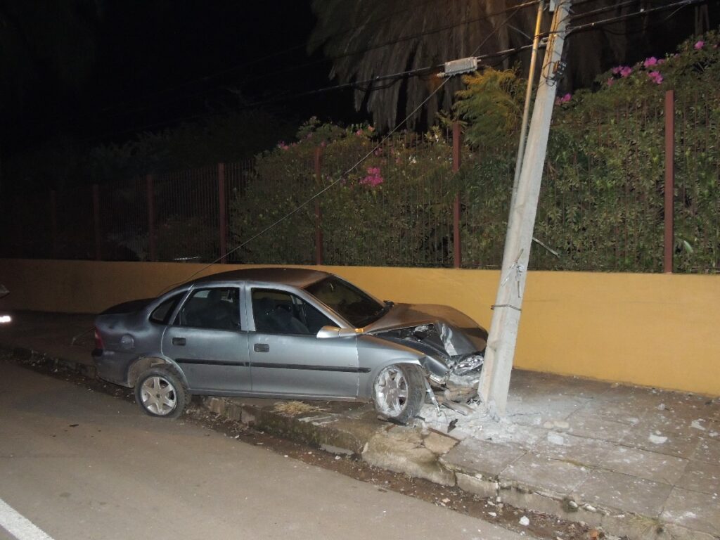 O condutor de um veículo Vectra, de cor cinza, de placas CHT-2659, transitava no sentido Bairro/Centro, quando por motivos ignorados, perdeu o controle, invadiu a pista contrária, subiu na calçada e colidiu em um poste de energia elétrica.