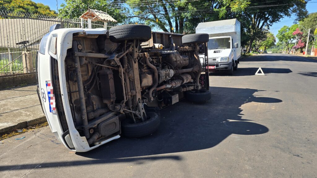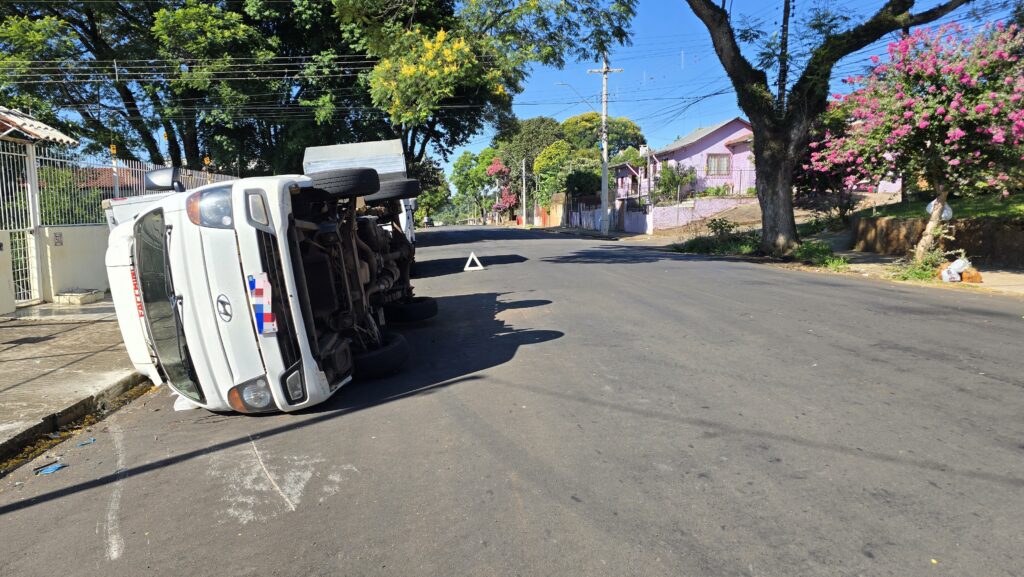 Na manhã desta quarta-feira (7), um tombamento foi registrado na rua São Roque, na entrada do bairro Planaltina, em Passo Fundo. O acidente envolveu um utilitário Hyundai HR, utilizado para entregas.