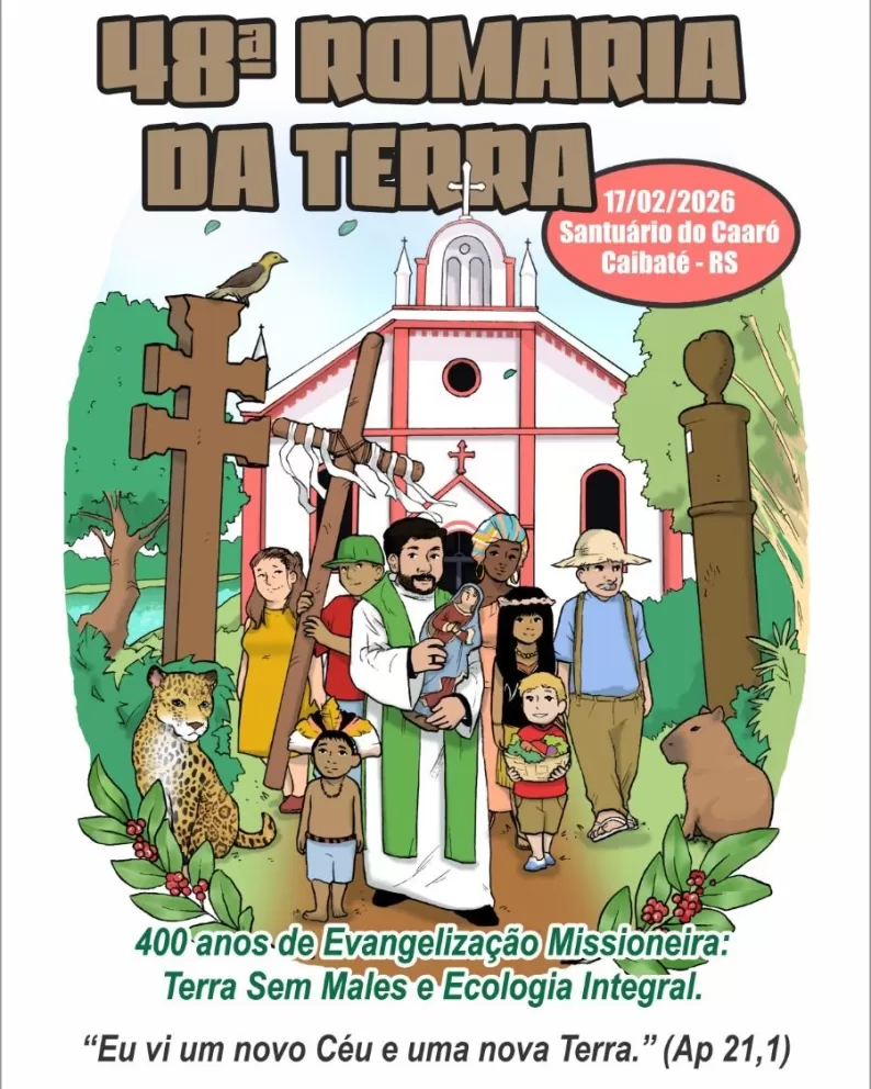 O Santuário do Caaró, em Caibaté (RS), na região das Missões, sedia nesta terça-feira, 17 de fevereiro de 2026, a 48ª Romaria da Terra do Rio Grande do Sul. O evento reúne caravanas de todo o estado, além de participantes de outras áreas do país.