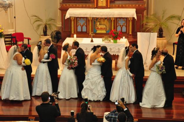 Seis irmãos se casaram juntos na Igreja Matriz Cristo Rei, em Não-Me-Toque na noite de sábado, 06. Pelo menos 400 pessoas acompanharam a missa, que começou por volta das 20h.