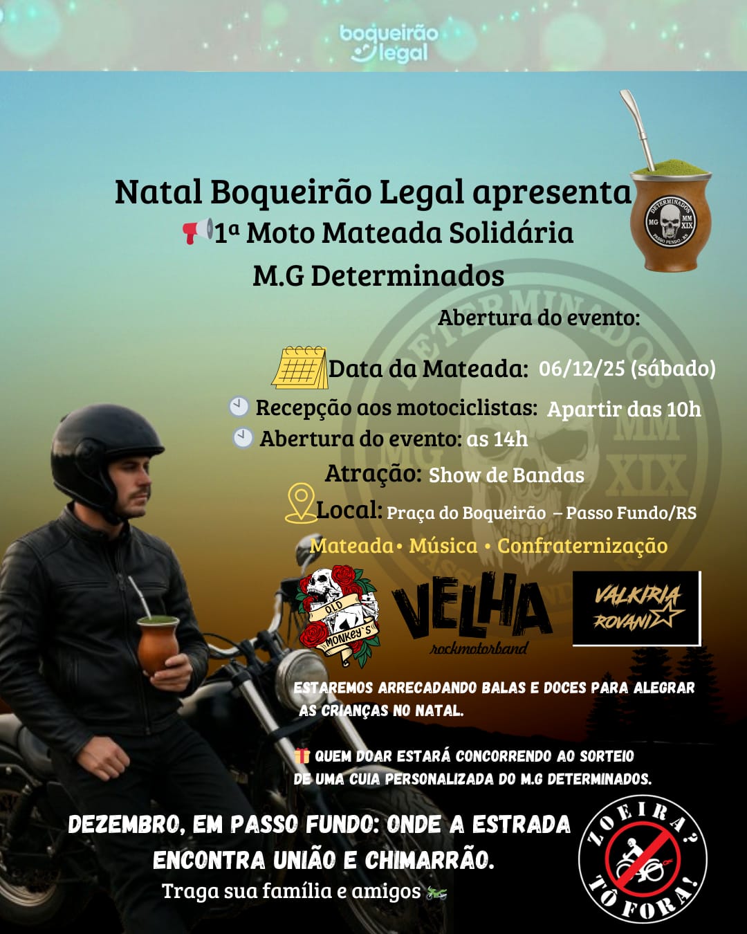 Uma atração em sua primeira edição estará presente no Natal Ecológico Boqueirão Legal, em Passo Fundo. É a Moto Mateada marcada para o dia 6 de dezembro, sábado.