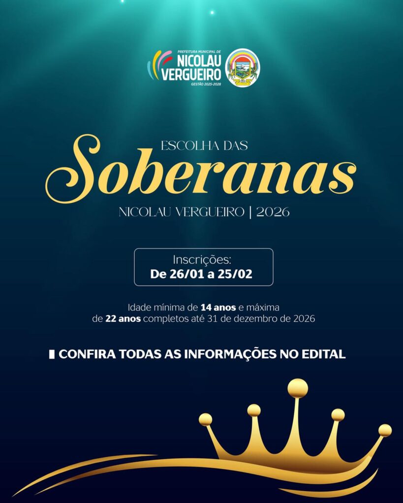 Estão abertas as inscrições para o Concurso de Escolha das Soberanas de Nicolau Vergueiro 2026, que irá eleger a Rainha, a Princesa e a Mais Bela Comerciária, representantes oficiais do município em eventos institucionais, culturais, turísticos e promocionais, dentro e fora da cidade.