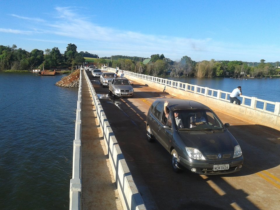 O prefeito de Nicolau Vergueiro, Danilmar da Costa, recebeu ontem o ex-deputado federal Beto Albuquerque, além de outros deputados, prefeitos, vereadores e a comundiade, para uma noite histórica. A inauguração da ponte sobre a Barragem de Ernestina. Segundo o prefeito um sonho esperado há 61 anos desde que a barragem foi construída. Na época, passaram muitos anos sem nenhum meio de fazer a travessia do lago de mais de 100 metros. Mais tarde chegou a balsa que atuou durante décadas e agora o trânsito está livre, sem cobrança, pela ponte nova. O ex-deputado Beto Abuquerque enalteceu a audácia do prefeito do pequeno município. “Ele chegou em meu gabiente em Brasília com um ofício pedindo a ponte, disse a ele que fizesse um projeto, ele voltou, pensei, é claro que ele não vai fazer o projeto, pois retornou pouco tempo depois com o projeto em mãos e aí fomos em busca dos recursos da ordem de R$ 4 milhões”. Os outros dois foram bancados pela própria prefeitura de Nicolau Vergueiro. Beto destacou ainda que é muito difícil conseguir recursos no Ministério da Integração Nacional, porque essa pasta normalmente atende estados pobres do nordeste. Mas a justificativa de que a ponte integraria os municípios, foi considerada.