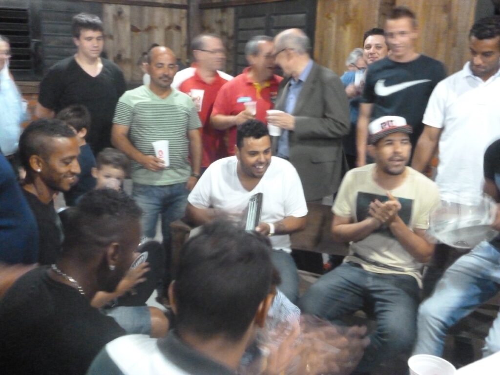 Os familiares dos atletas também estiveram presentes. Era o momento de curtir a alegria da conquista da Copa Serrana. Após o churrasco, não poderia faltar o tradicional pagode dos campeões (foto).