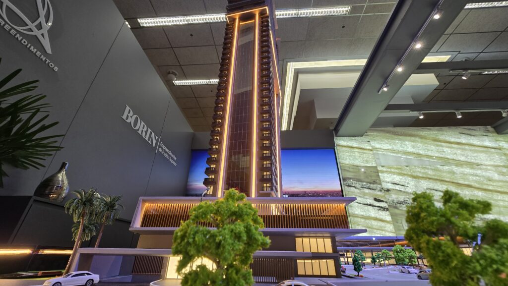 Embora a maquete já esteja em exposição na feira, as unidades residenciais ainda não estão disponíveis para venda. O desenvolvimento é assinado pela AB Empreendimentos e Borin Empreendimentos de Padrão Superior.