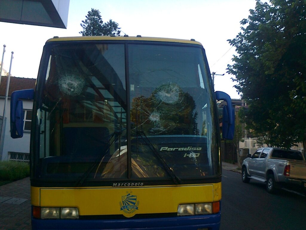 Na madrugada de hoje,19, o gerente de futebol do Esporte Clube Pelotas foi informado que o ônibus do clube Pelotas teve os dois parabrisas apedrejados.