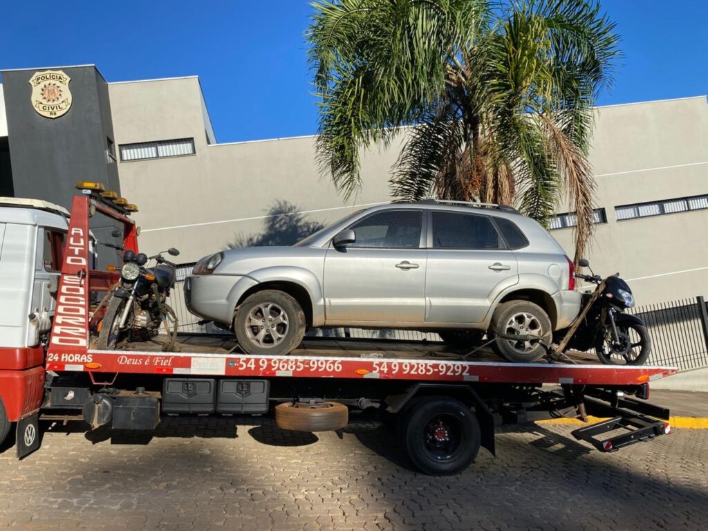 Nas diligências, os policiais apreenderam um veículo Hyundai Tucson em situação de furto ou roubo, duas motocicletas, sendo uma com sinal identificador adulterado, além de capacete e peças de vestuário. Também foram localizados aparelhos celulares, um carregador de pistola, uma case para arma de fogo, uma quantia em dinheiro ainda não contabilizada e uma porção de maconha.