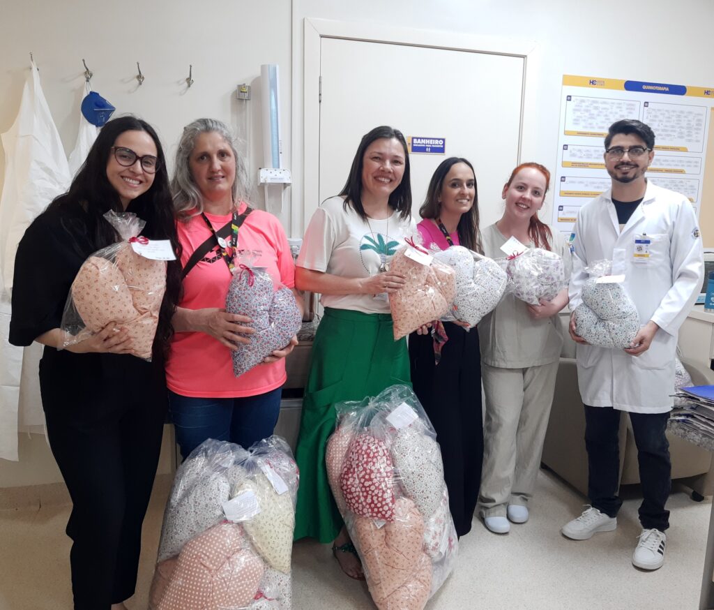 A ação é resultado de um projeto institucional que aborda temas voltados à saúde durante todos os meses do ano. “Dentro do Outubro Rosa, nós oferecemos uma oficina de costura chamada ‘Coração que Acolhe’, onde nossos funcionários confeccionaram estes corações para as pessoas que estão neste processo de quimioterapia. Foi feito com muito carinho e muito propósito.” explicou Débora Brandão Pasinato, gerente da Divisão de Gestão de Pessoas no momento da entrega das almofadas para a equipe do HC e pacientes.