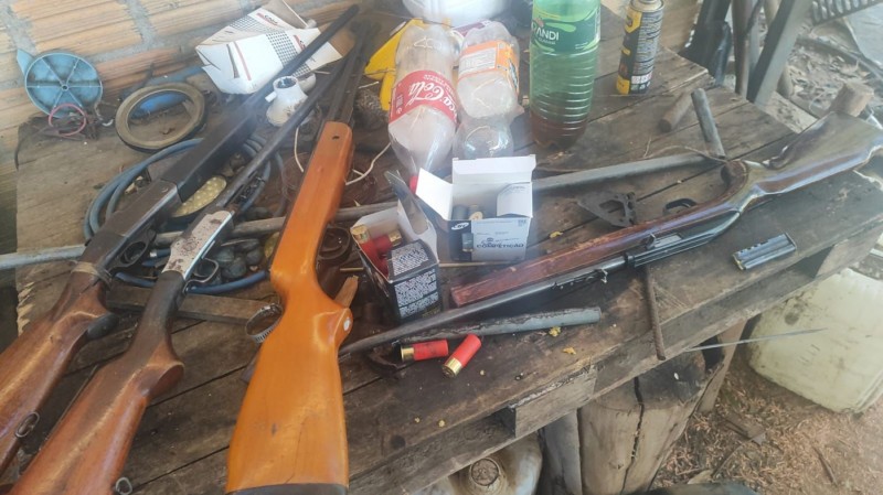 A investigação identificou propriedades rurais utilizadas para armazenar produtos e equipamentos agrícolas de origem ilícita. Durante o cumprimento de mandados de busca e apreensão, os policiais civis localizaram uma série de irregularidades. Um dos suspeitos chegou a fugir, portando duas armas de fogo que foram descartadas em meio ao campo. Uma terceira arma foi encontrada dentro de uma residência.