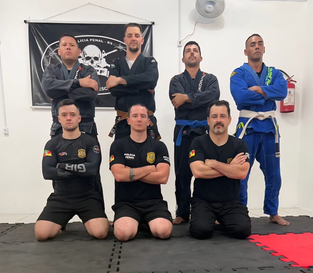 Policiais Penais lotados no Presídio Regional de Passo Fundo (PRPF) e na 4ª Delegacia Penitenciária participam de treinamentos regulares de jiu-jitsu, atividade voltada ao aprimoramento técnico e à qualificação profissional dos servidores.