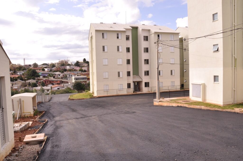 O condomínio, vinculado ao Programa Minha Casa, Minha Vida, conta com apartamentos de dois quartos, dois salões de festa e parque infantil. A pavimentação irá beneficiar 220 famílias que terão os apartamento disponíveis nas próximas semanas.