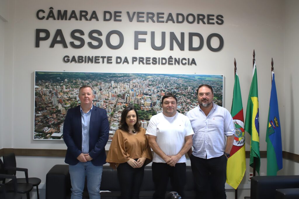 O presidente Luizinho Valendorf (PSDB) recebeu, nesta manhã (05), o novo Diretor-Geral da Casa, Evandro Zambonato, e o novo Procurador-Geral, Rodrigo Borba. Para alinhamento das demandas da presidência, Valendorf realizou uma reunião em conjunto com os titulares nomeados e a nova chefe da Comunicação Institucional, Márcia Machado.