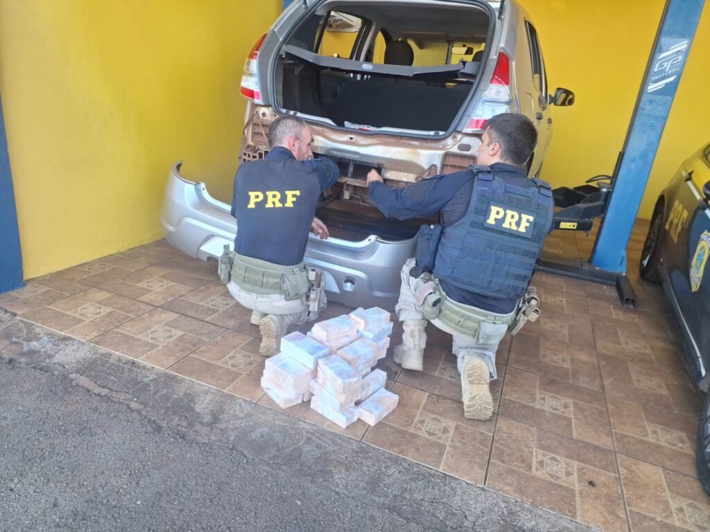 Os policiais rodoviários federais abordaram um Renault Sandero, com placas de Cascavel, no Paraná, que seguia pela rodovia. Durante a fiscalização minuciosa, a equipe localizou um compartimento oculto no porta-malas, onde estavam escondidos 65 aparelhos celulares da marca Xiaomi. O valor estimado da carga ultrapassa R$ 50 mil.