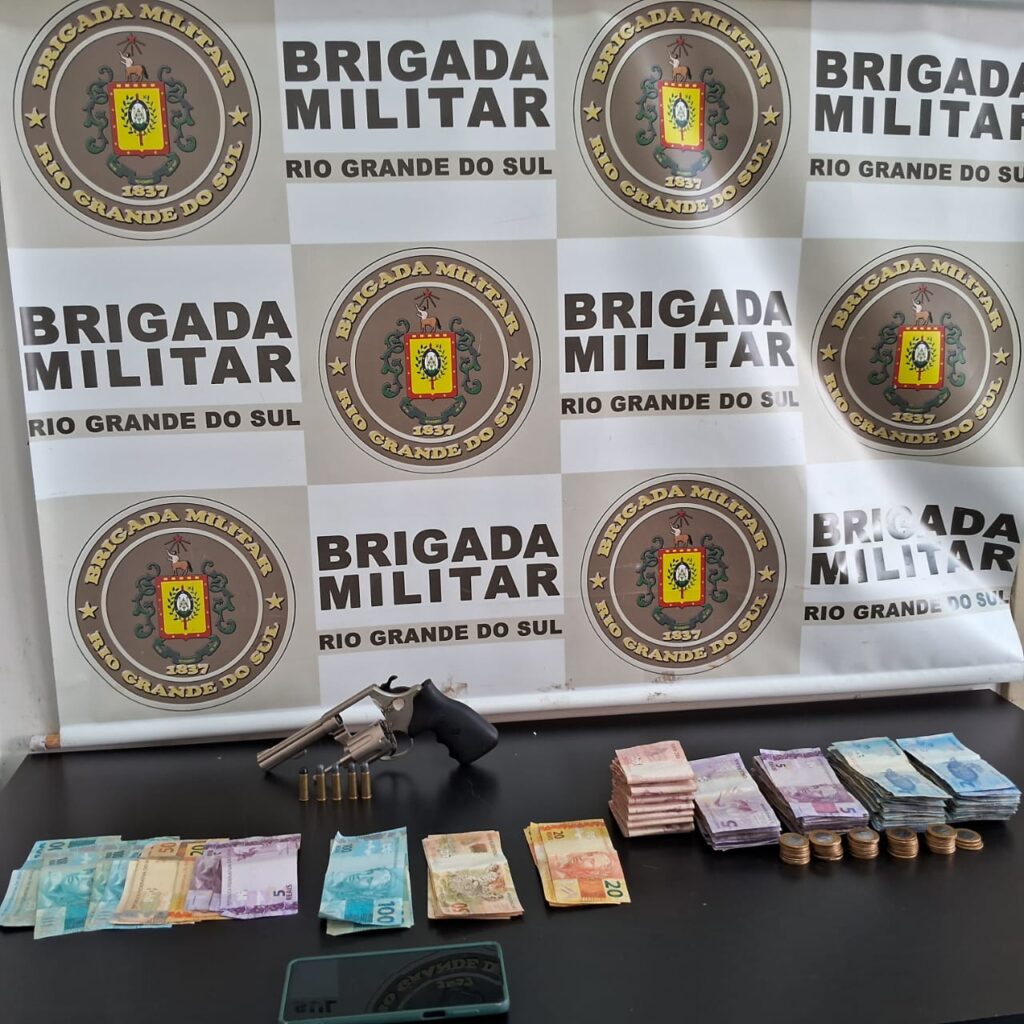 Durante a revista pessoal, os policiais localizaram um revólver calibre 38 carregado com cinco munições e R$ 3.016,00 em dinheiro. O suspeito recebeu voz de prisão e foi encaminhado à Delegacia de Polícia para o registro da ocorrência.