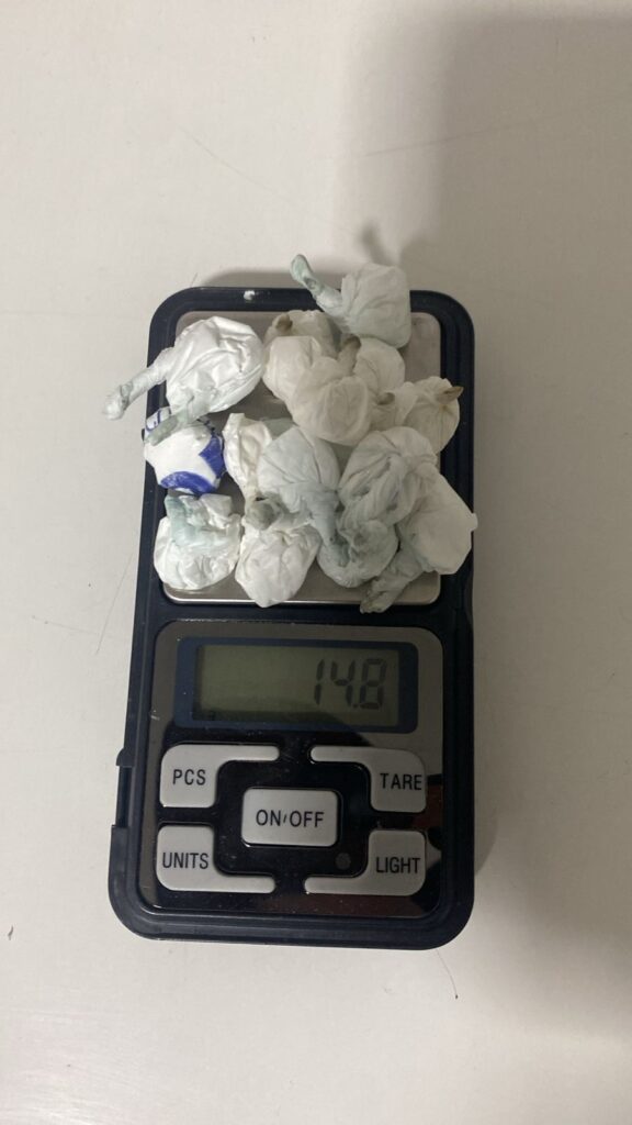 Em revista pessoal, foram localizadas 18 porções de cocaína, já fracionadas e prontas para a comercialização.