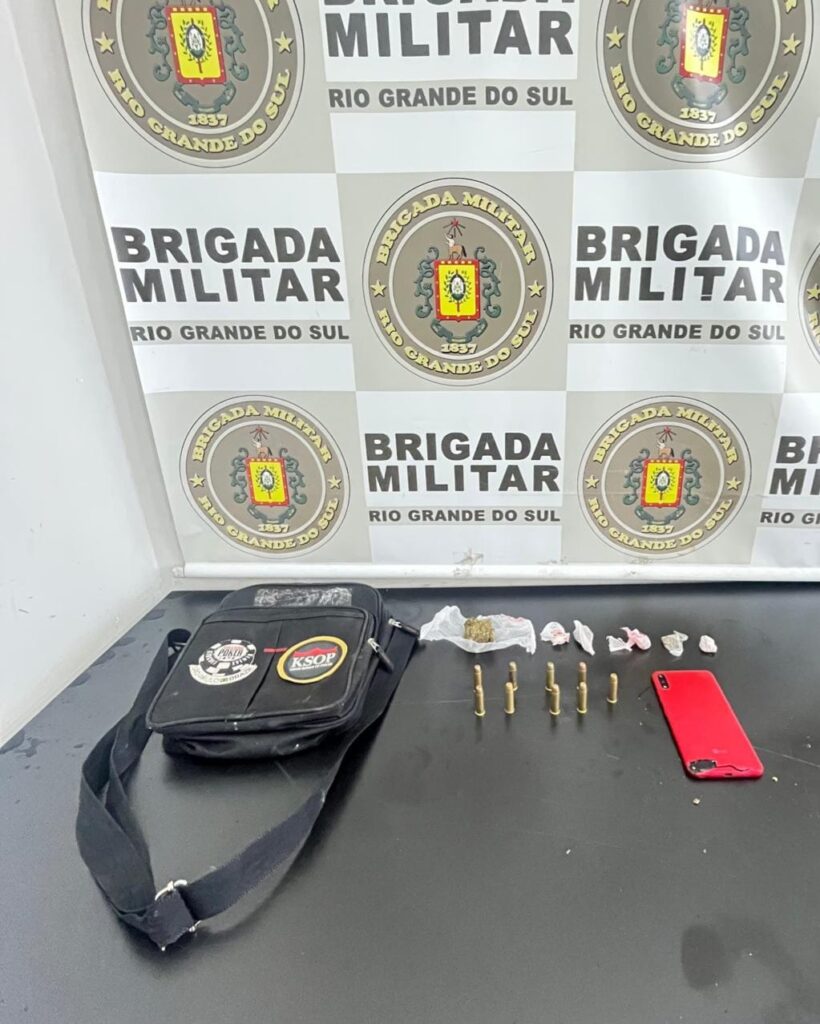 Durante a abordagem, os policiais encontraram em seu poder nove munições calibre 38, seis porções de maconha e um aparelho celular.
