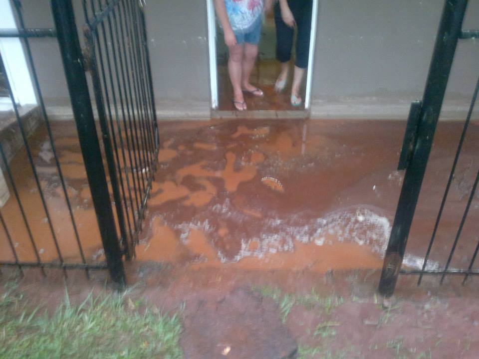 Quando chove, como é o caso dessa segunda e terça-feira, a água, que não tem por onde sair, adentra as residências.