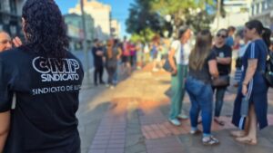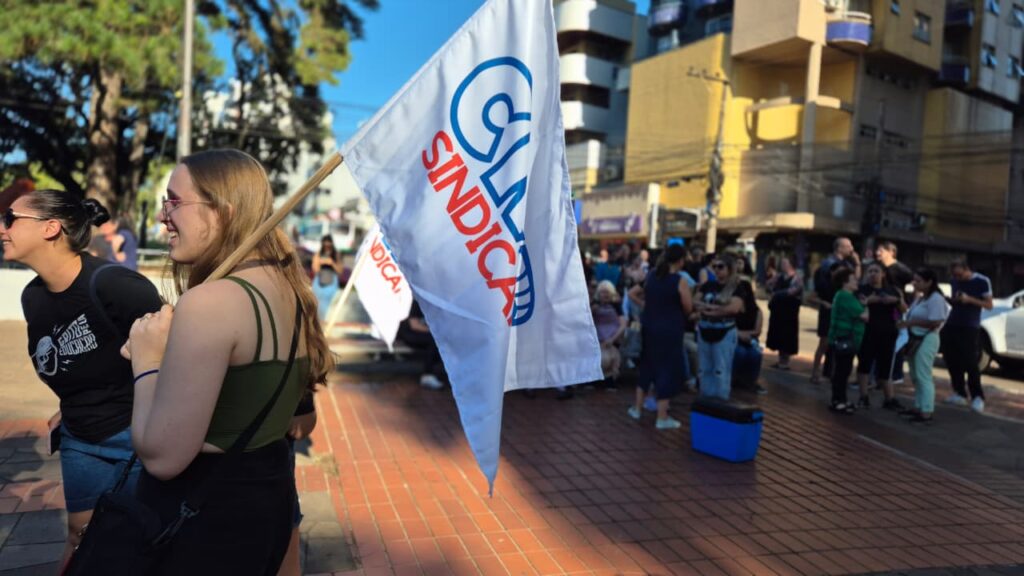 Na manhã desta segunda-feira, 30, professores e profissionais da rede municipal de ensino realizam um ato público na Avenida Brasil, no Centro de Passo Fundo, nas proximidades da Praça do Teixeirinha. A mobilização foi convocada pelo CMP Sindicato e reúne participantes em defesa do reajuste do piso nacional do magistério.