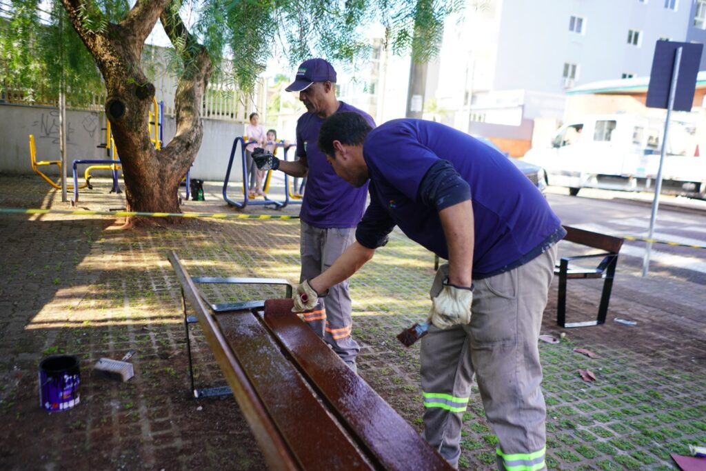 A Secretaria de Serviços Gerais está executando uma série de melhorias na Vila Luíza, como parte do programa “Eu Amo Passo Fundo, Eu Cuido”. Entre as ações, estão a limpeza e manutenção de espaços públicos, como a praça junto à EMEI André Zaffari, que recebeu pintura de brinquedos, bancos e meio-fio, além de melhorias na iluminação pública, varrição e poda de árvores.
