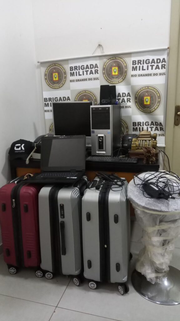 Em revista ao carrinho, foram localizados diversos objetos, entre eles equipamentos eletrônicos, acessórios, malas de viagem, ferramentas e outros utensílios. Questionados sobre a procedência dos materiais, os abordados não souberam informar origem lícita.