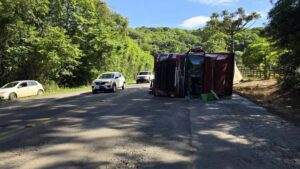 Na tarde da terça-feira (18), um caminhão Volvo FH com placas de São Paulo, tombou na ERS-324, no trecho conhecido como curva do Burro Preto, entre Passo Fundo e Marau. O veículo seguia no sentido Marau quando, por motivos ainda desconhecidos, tombou e passou a bloquear parcialmente a pista.