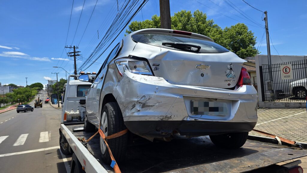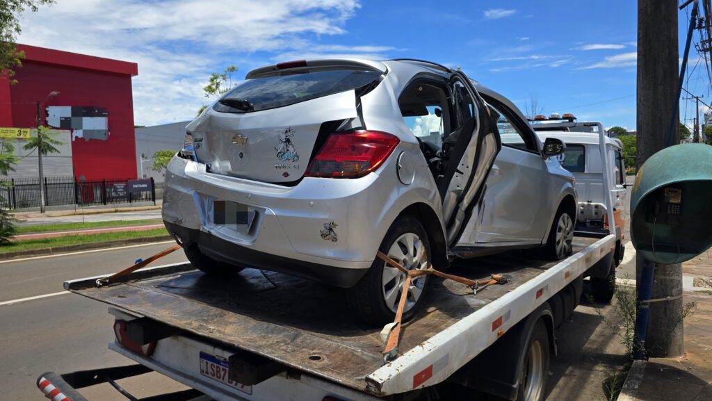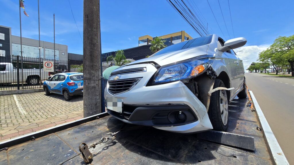 O veículo roubado passou a perseguir um Chevrolet Onix, que acabou sendo atingido lateralmente nas proximidades do ginásio do Guri, no bairro São Luiz Gonzaga. Com o impacto, os veículos colidiram contra um muro e um poste.