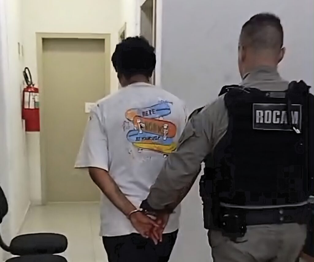 Com base nas informações, a ROCAM iniciou buscas nas proximidades e localizou um homem com as mesmas características correndo pela via. Ele foi abordado e identificado pelas iniciais M.P.M.