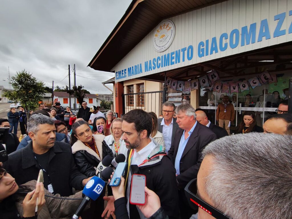 Na manhã desta quarta-feira, 30, cumprindo agenda pelo Norte do estado, o governador Eduardo Leite visitou a Escola Municipal Maria Nascimento Giacomazzi, em Estação, na região do Alto Uruguai.  Em 8 de julho de 2024, um adolescente de 16 anos entrou armado com uma faca e realizou ataque – uma criança perdeu a vida e outras duas e uma professora ficaram feridas.