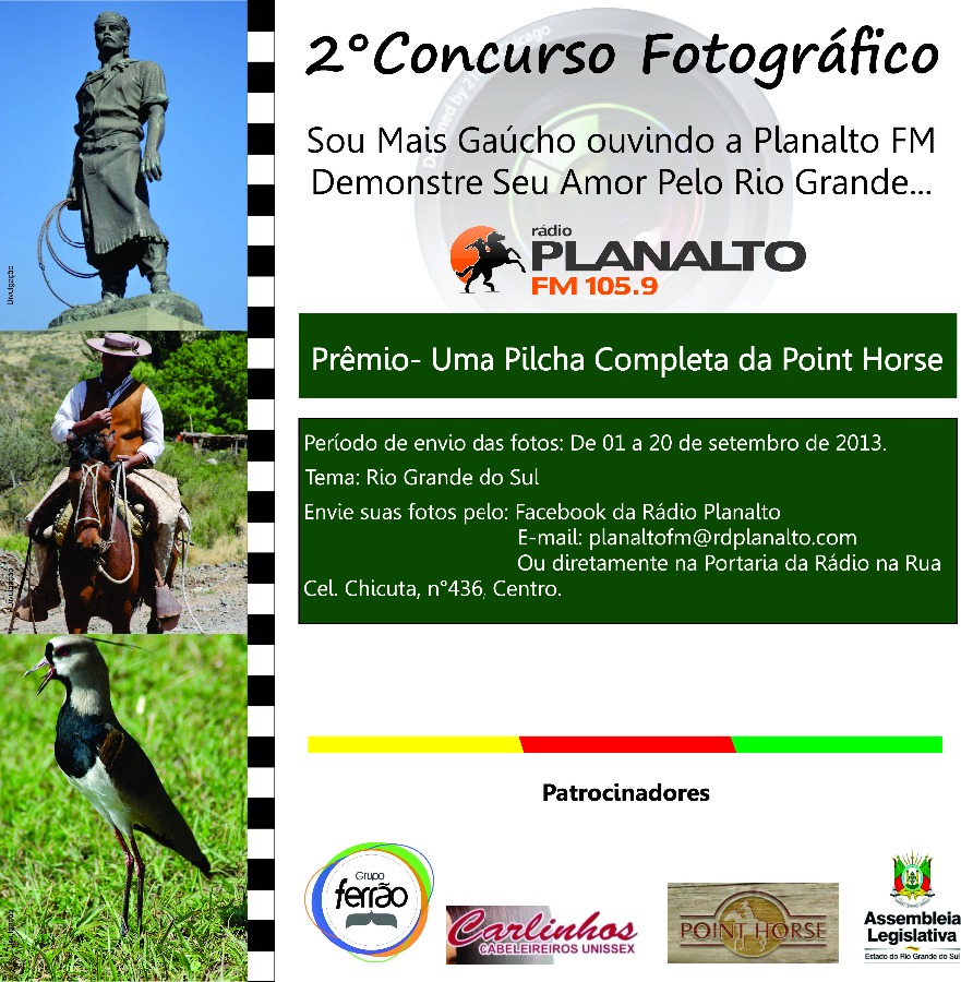 Envie fotos para o e-mail: planaltofm@rdplanalto.com ou pela pagina da Planalto Fm no Facebook até dia 20 de setembro e concorra!