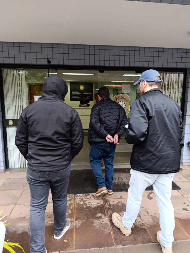 Os policiais procederam ao cumprimento de mandado de prisão preventiva do investigado pelo crime de extorsão ocorrido no município de Coxilha. O preso possui extensa folha de antecedentes criminais por crimes patrimoniais com violência e grave ameaça contra pessoa.