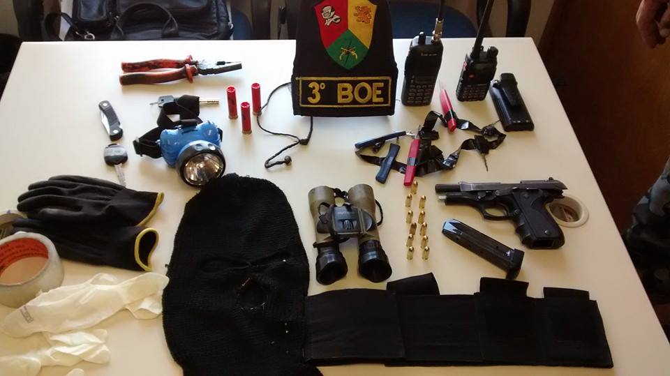 Com ele os policiais do 3º Batalhão de Operações Especiais (3º BOE) encontraram uma maleta contendo uma pistola calibre 380, uma touca ninja, luvas, diversas chaves micha, a chave de uma camioneta Mitsubishi modelo L200, pertencente à Receita Federal, dois rádios HT na frequência da Brigada Militar.
