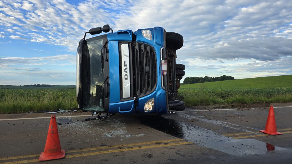 De acordo com as informações apuradas no local pelo repórter Jeferson Vargas, o caminhão seguia no sentido Pontão–Passo Fundo e estava descarregado no momento do acidente. Após sair da pista, o veículo envolvido desceu um barranco no acostamento, atingiu uma área de mata e acabou tombando, permanecendo sobre a pista de rolamento.