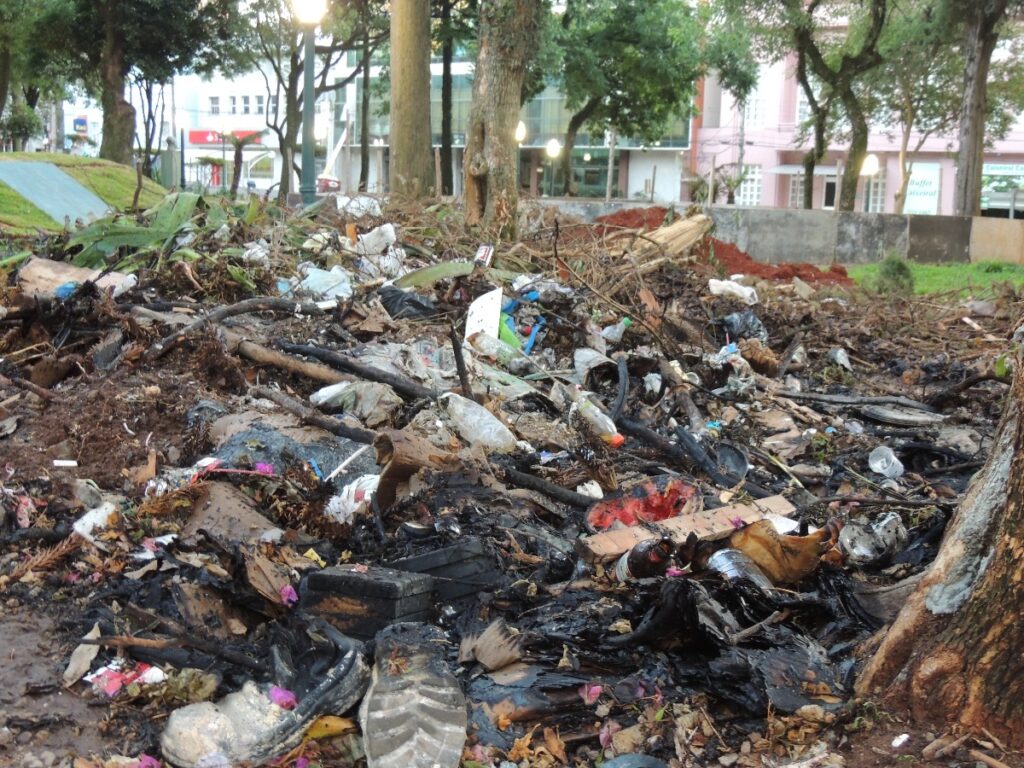 Na madrugada de sábado, 7, para domingo, 8, vândalos atearam fogo à praça Marechal Floriano, Centro de Passo Fundo. O fogo atingiu a parte de baixo de onde estão sendo reformados os banheiros. Quando o dia estava amanhecendo ainda era possível sentir o cheiro da fumaça. Em meio aos restos, era possível ver garrafas, sapatos, restos de alimentos, plásticos e outros materiais. No centro da praça, junto à cuia, havia pelo menos cinco garrafas de vodca e uma de cachaça, diversos copos e embalagens de gelo. A quantidade de lixo encontrado em toda a praça era muito grande. O Corpo de Bombeiros atendeu a ocorrência e os banheiros não chegaram a ser atingidos pelas chamas.