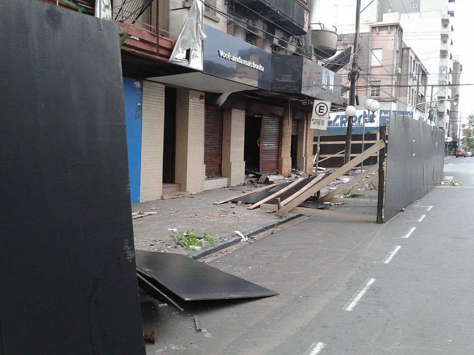 Vândalos derrubam tapume no prédio Ughini