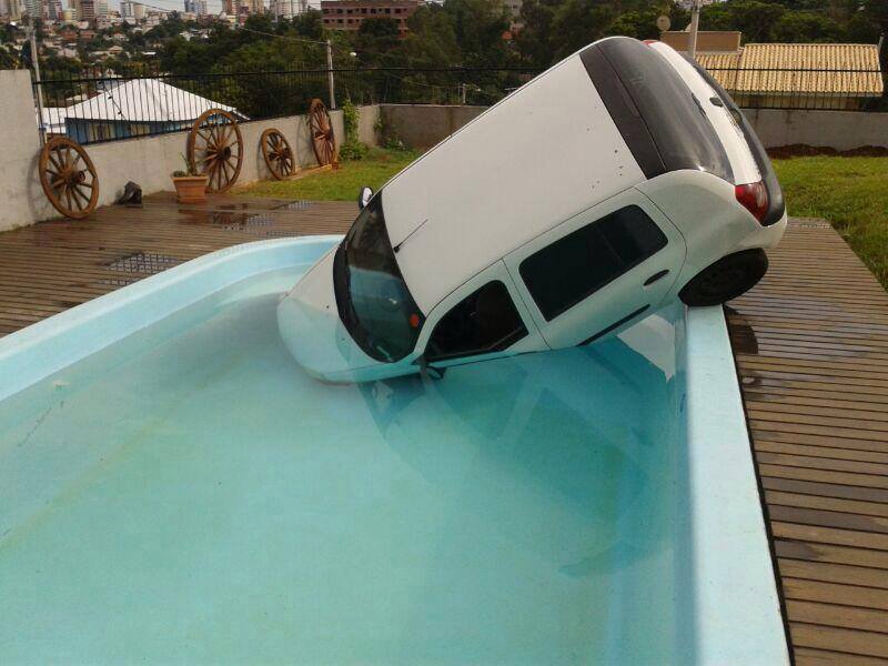 O condutor estaria saindo de casa e, teria esquecido algo no interior da casa, ao retornar o veículo estava com a frente dentro da piscina. O veículo foi removido com ajuda de vizinhos e amigos que entraram dentro da piscina empurrando-o para fora.