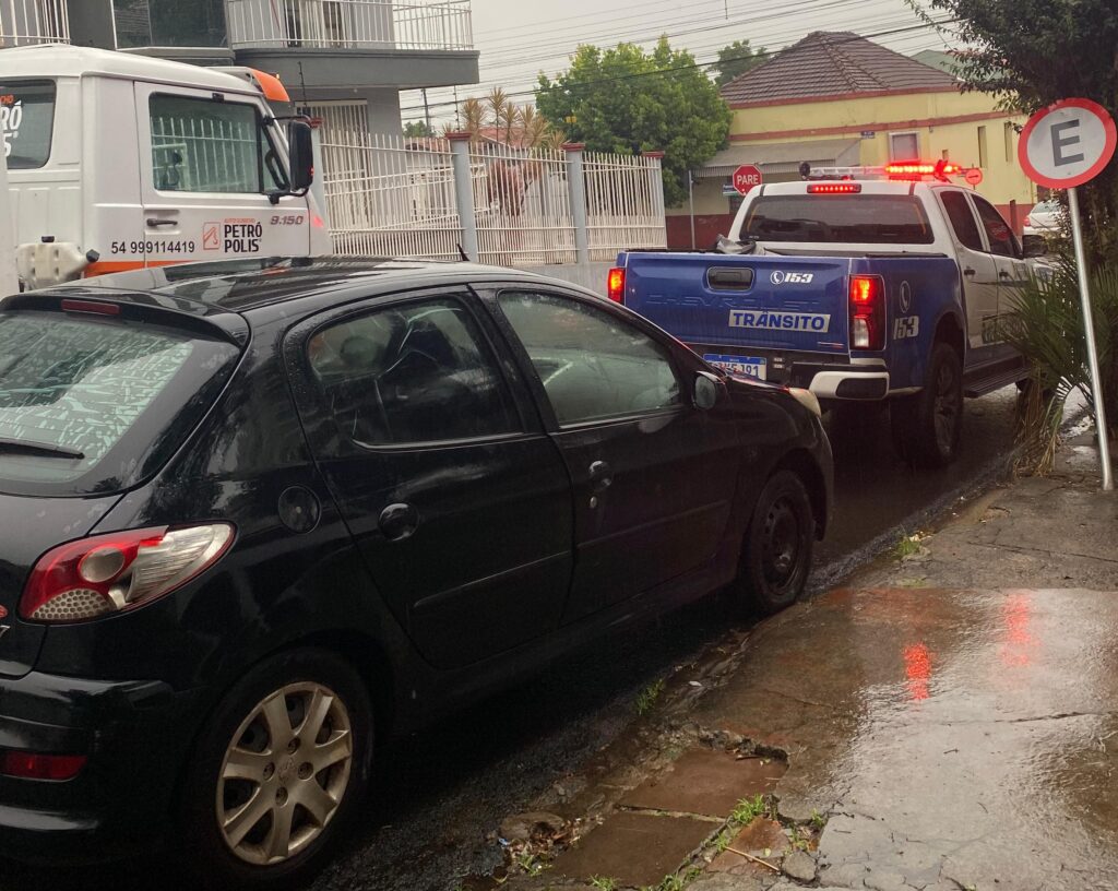 Na tarde desta terça-feira (17), agentes da Guarda Municipal de Trânsito abordaram um veículo durante fiscalização de rotina na Rua Castanho da Rocha, no bairro Boqueirão, em Passo Fundo.