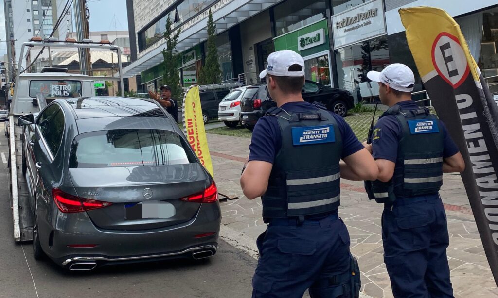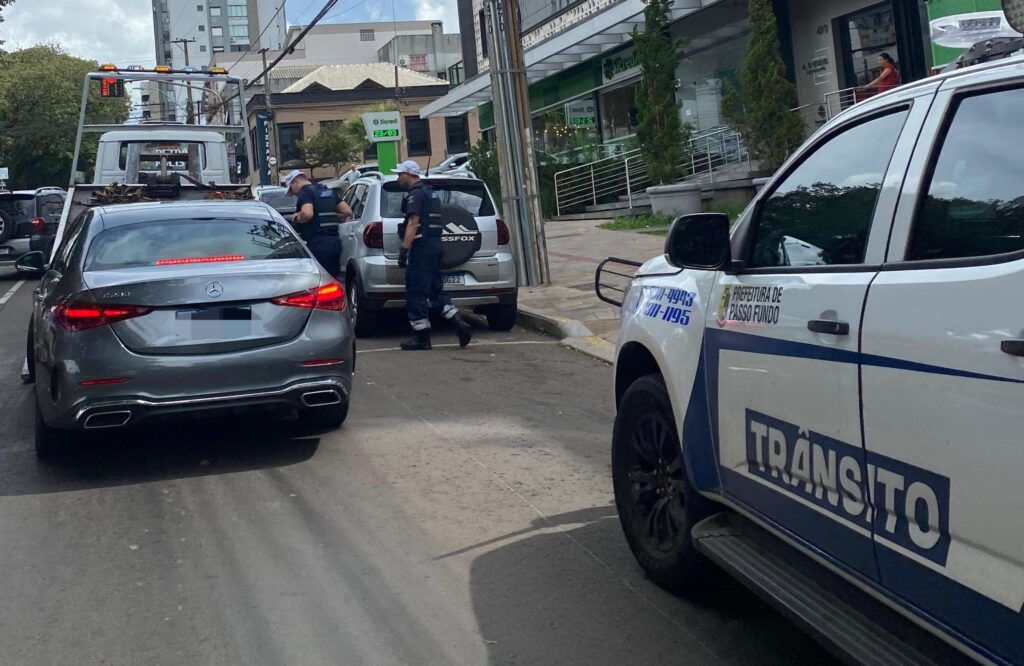 Na tarde desta segunda-feira (23), agentes da Guarda Municipal de Trânsito realizaram a remoção de um veículo com diversas irregularidades na Avenida Brasil Leste, no Centro de Passo Fundo.