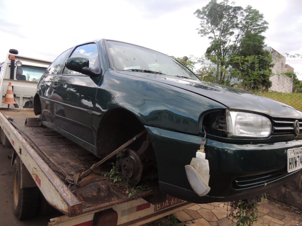 No local os policiais encontraram o automóvel sem as rodas, sem os equipamentos obrigatórios, sem o sistema de som e a bateria. O que sobrou do veículo foi removido ao pátio do guincho e a autoria dos fatos serão apurados pela DEFREC.