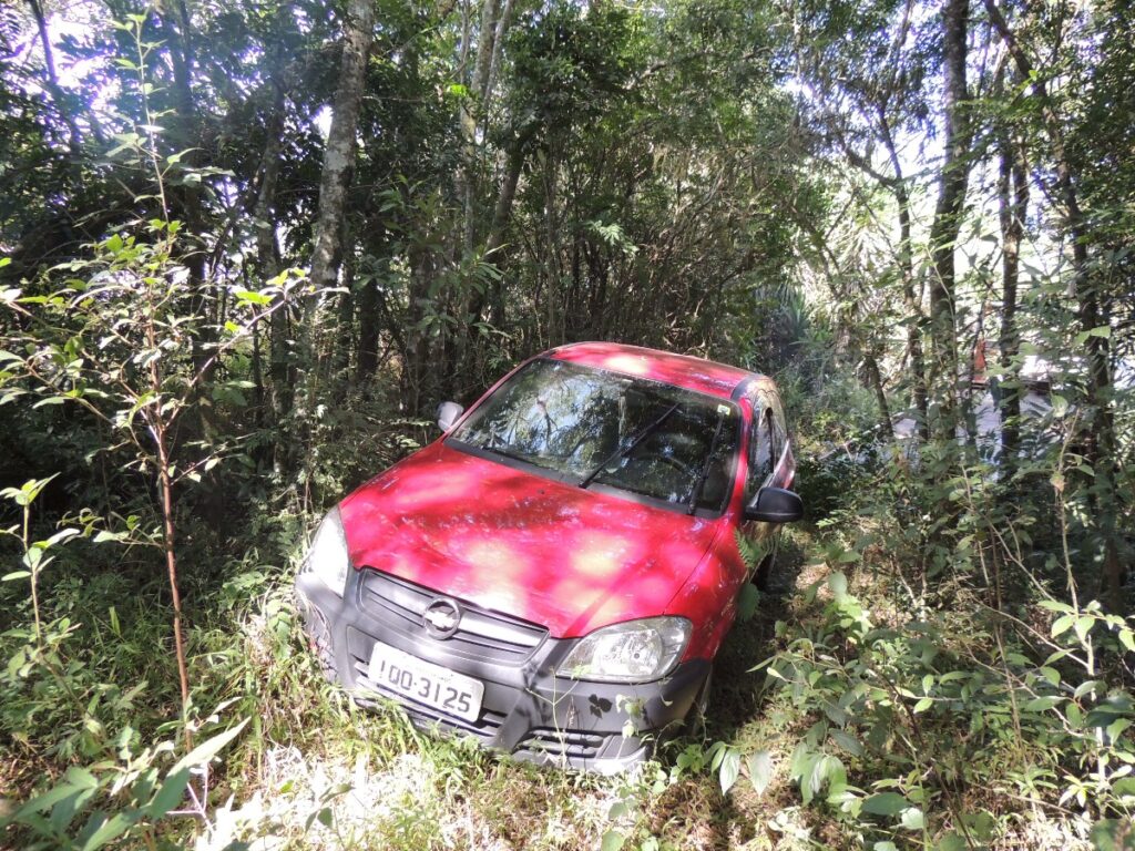 Na manhã de hoje,08, o Batalhão Rodoviário Estadual foi informado que havia em meio a uma área de preservação ambiental no quilômetro 12 da ERS 135 um automóvel.
