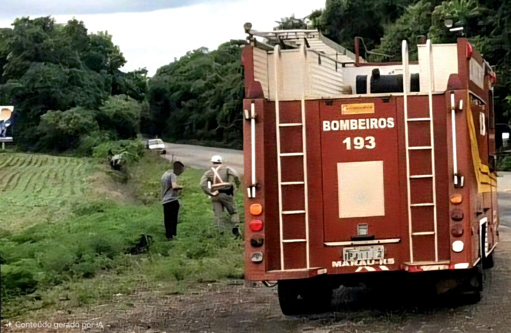 A imagem divulgada pelo Corpo de Bombeiros mostra o veículo com as rodas para cima, fora da pista de rolamento, em um barranco coberto por arbustos. Apesar da dinâmica do acidente, não houve registro de feridos.