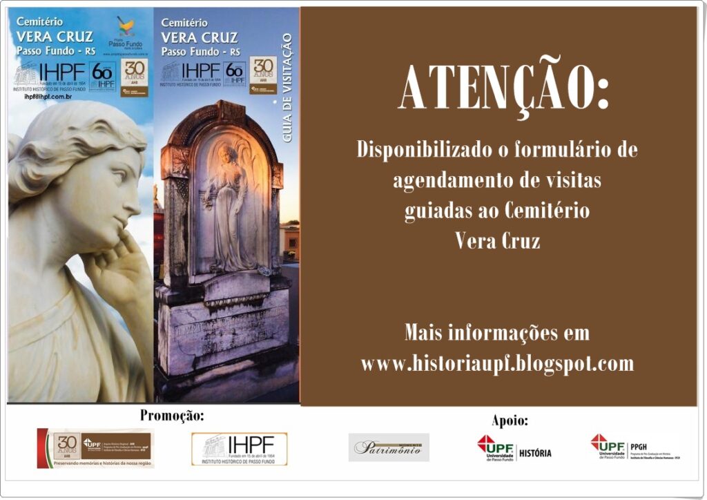 Os interessados devem preencher o formulário disponível no site www.historiaupf.blogspot.com.br, no link Agendamento de Visitas Guiadas ao Cemitério Vera Cruz.