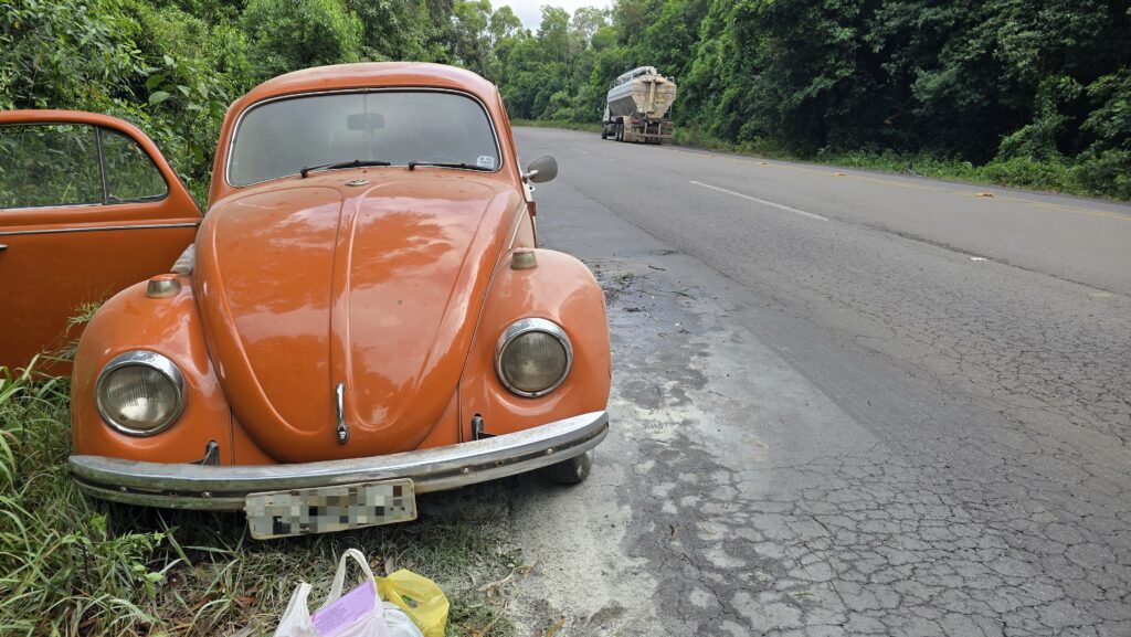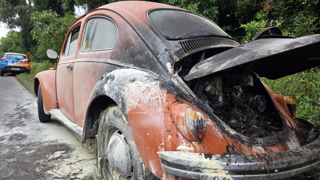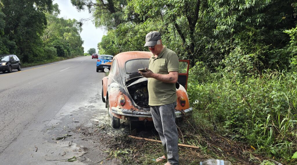 Na manhã desta quinta-feira (11), um Volkswagen Fusca com placas de Vila Maria pegou fogo enquanto trafegava pela ERS-324, no trecho próximo à curva do Nono Zonta, em Passo Fundo. O motorista, morador de Passo Fundo, seguia para Vila Maria e havia abastecido o veículo poucos minutos antes do incêndio.